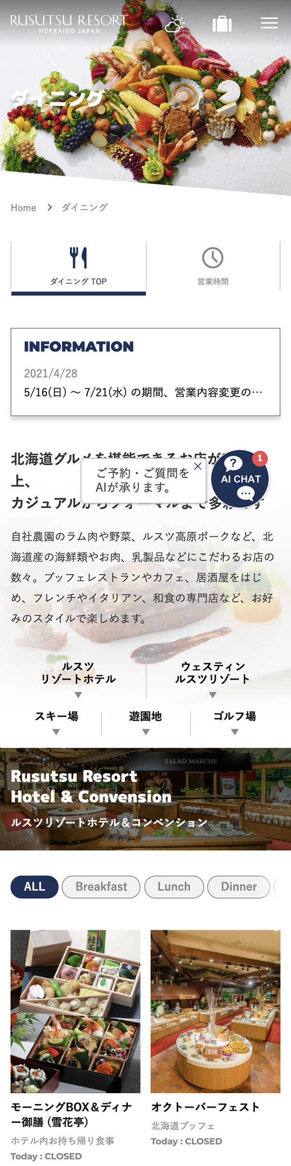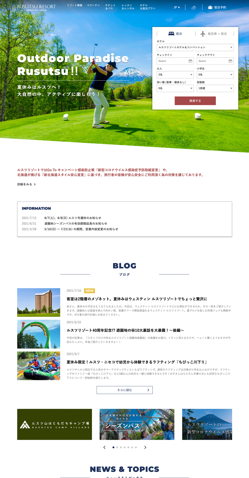 ウェブサイトのリニューアルを全面的に担当。国内外からの評価・人気が高いリゾート施設であるため、サイトマップを一新し、海外のユーザーに馴染みやすいサイト構成として作成。サイト制作の他、施設内のデジタルサイネージの画面デザイン作成も担当。